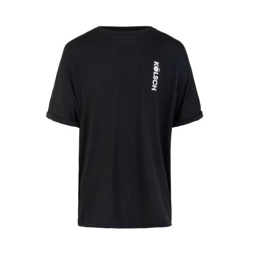 T-shirt made from 90% Polyester and 10% Elastane. It is a mesh material, made for dancing. Very light and breathable. Perfect for those all night longs. Hand wash and hang to dry over night, and you are ready for day 2 Details are rolled sleeves and a modern cut. T-shirts are oversized but elastic. If you want a tighter fit, go one size down. The number print is taken directly from the Kölsch album cover and has a vintage feel.
